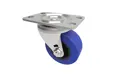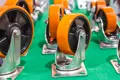 Side view three different styles of chair feet. One is a crutch style, grey and made of rubber. One is Straight sided, black and made of rubber. One is LDPE, black and has an angled base.